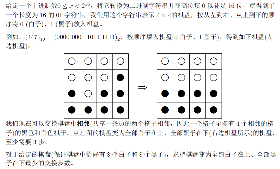 输入一行一个整数x,为十进制表示下的棋盘。